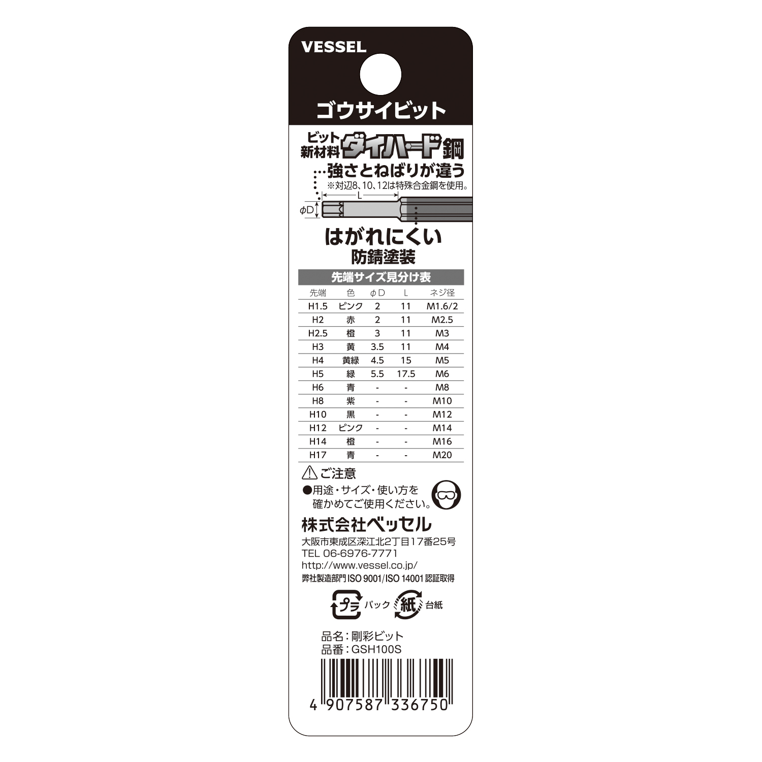 单头钢彩内六角批头 No.GSH140S(H14×65)