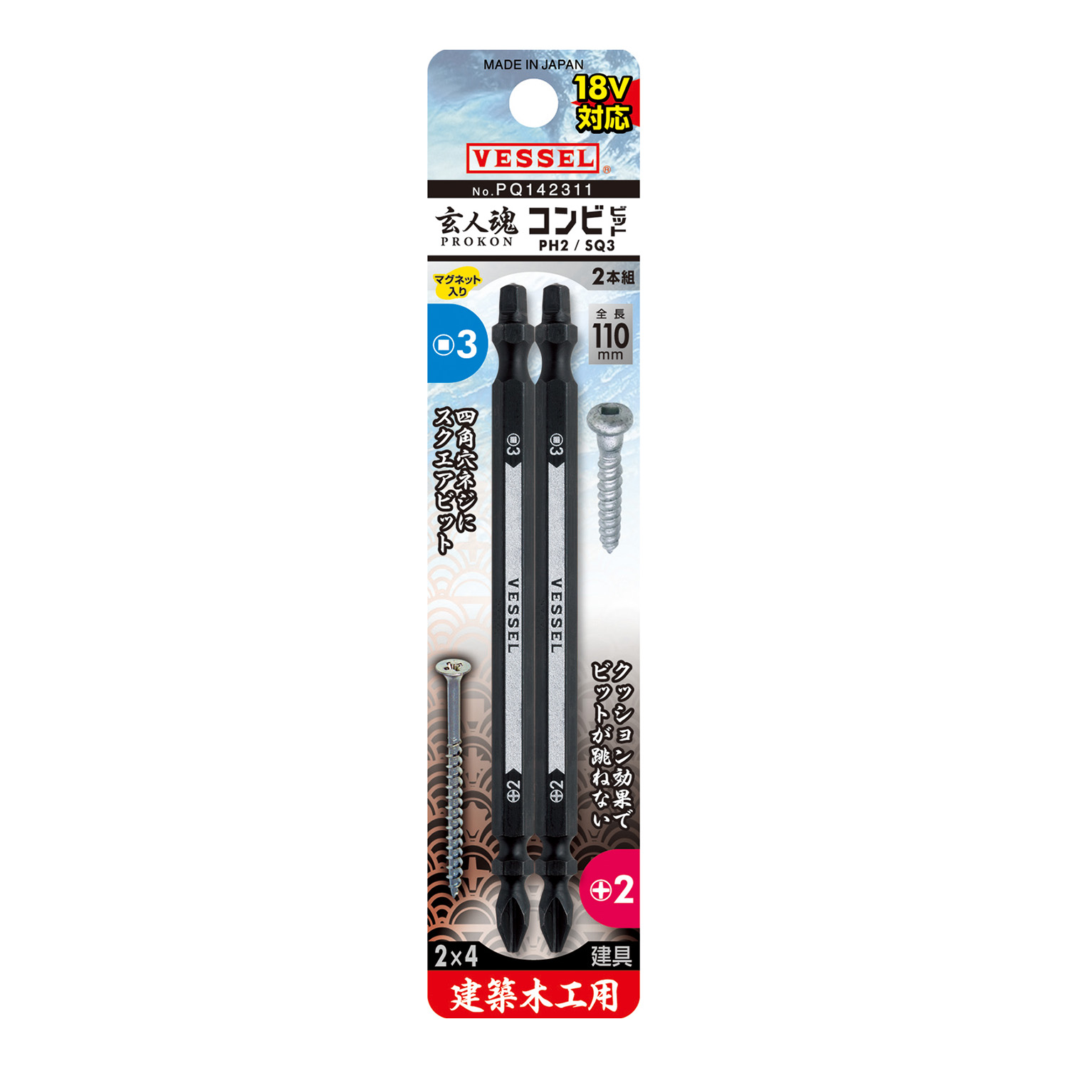 双头两用批头 2支装 No.PQ142311(+2/SQ3×110 2支)