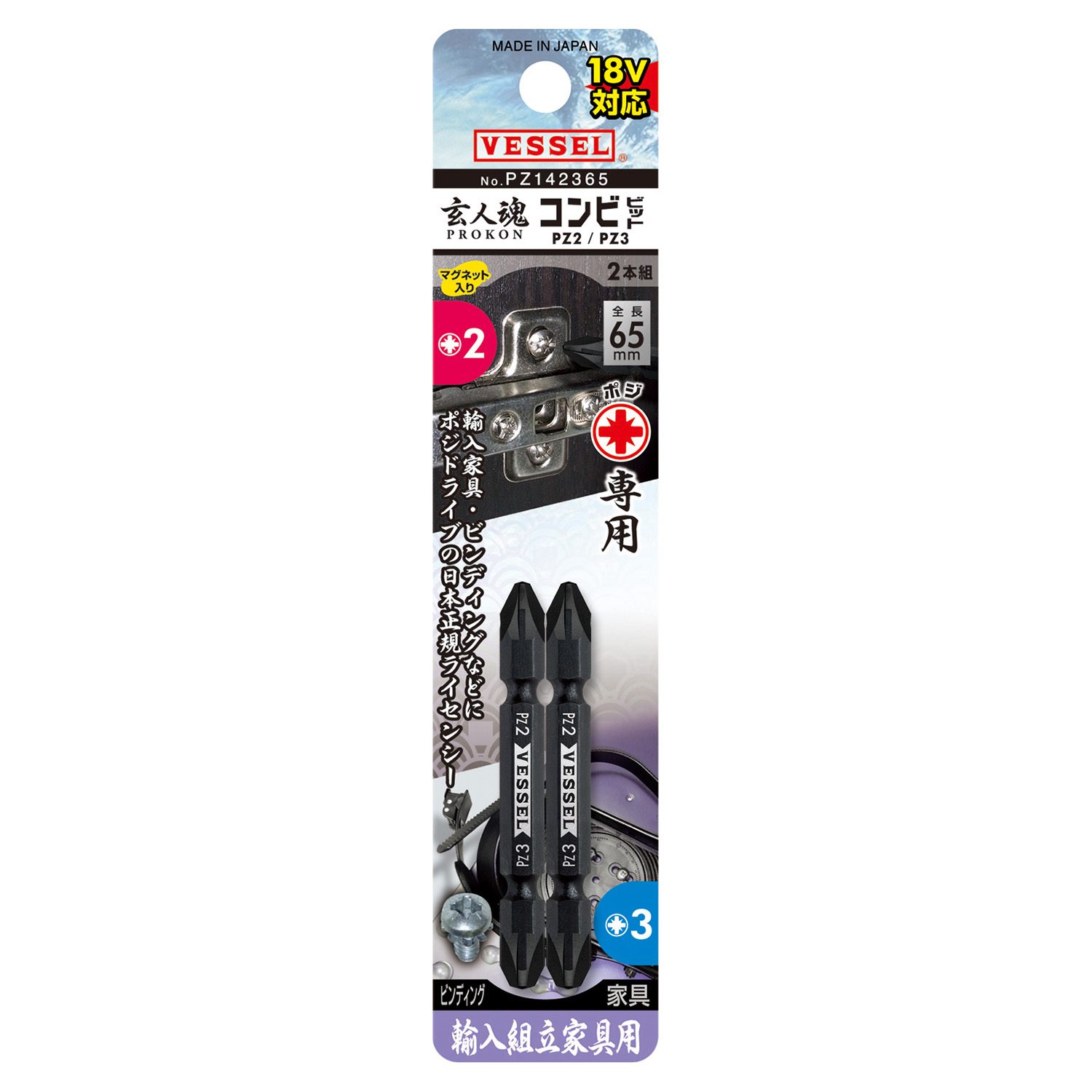 双头两用批头 2支装 No.PZ142365(PZ2/PZ3×65 2支)