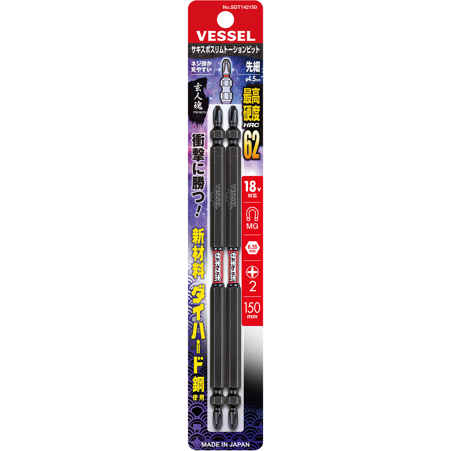 SAKISUBO 细型扭力批头 2支装 No.SDT142150(+2×φ4.5×150 2支)