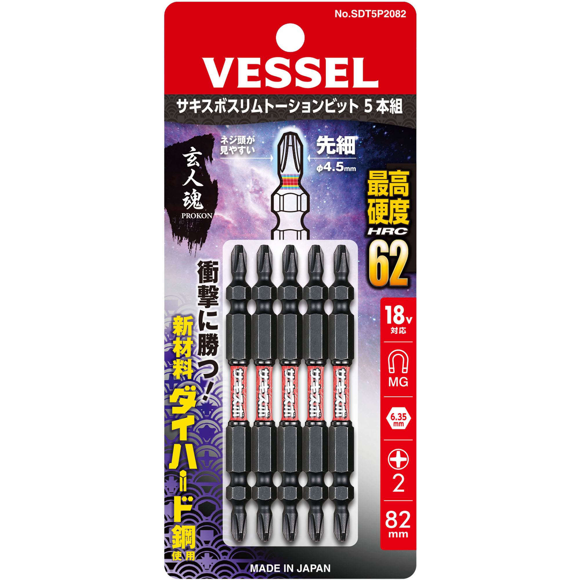 SAKISUBO 细型扭力批头 5支装 No.SDT5P2082(+2×φ4.5×82 5支)