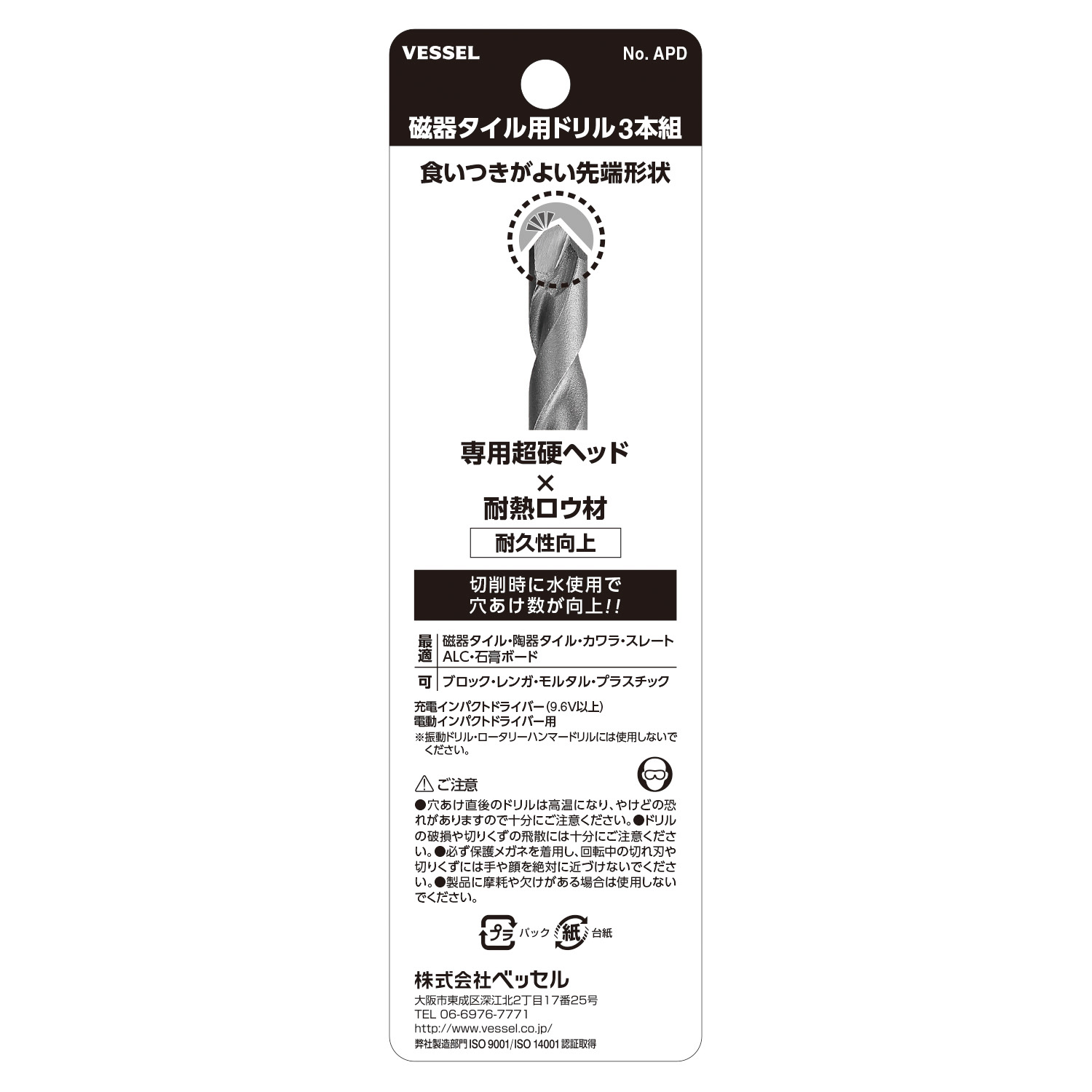 ●利用耐热钎剂接合瓷砖专用超硬钻尖。
