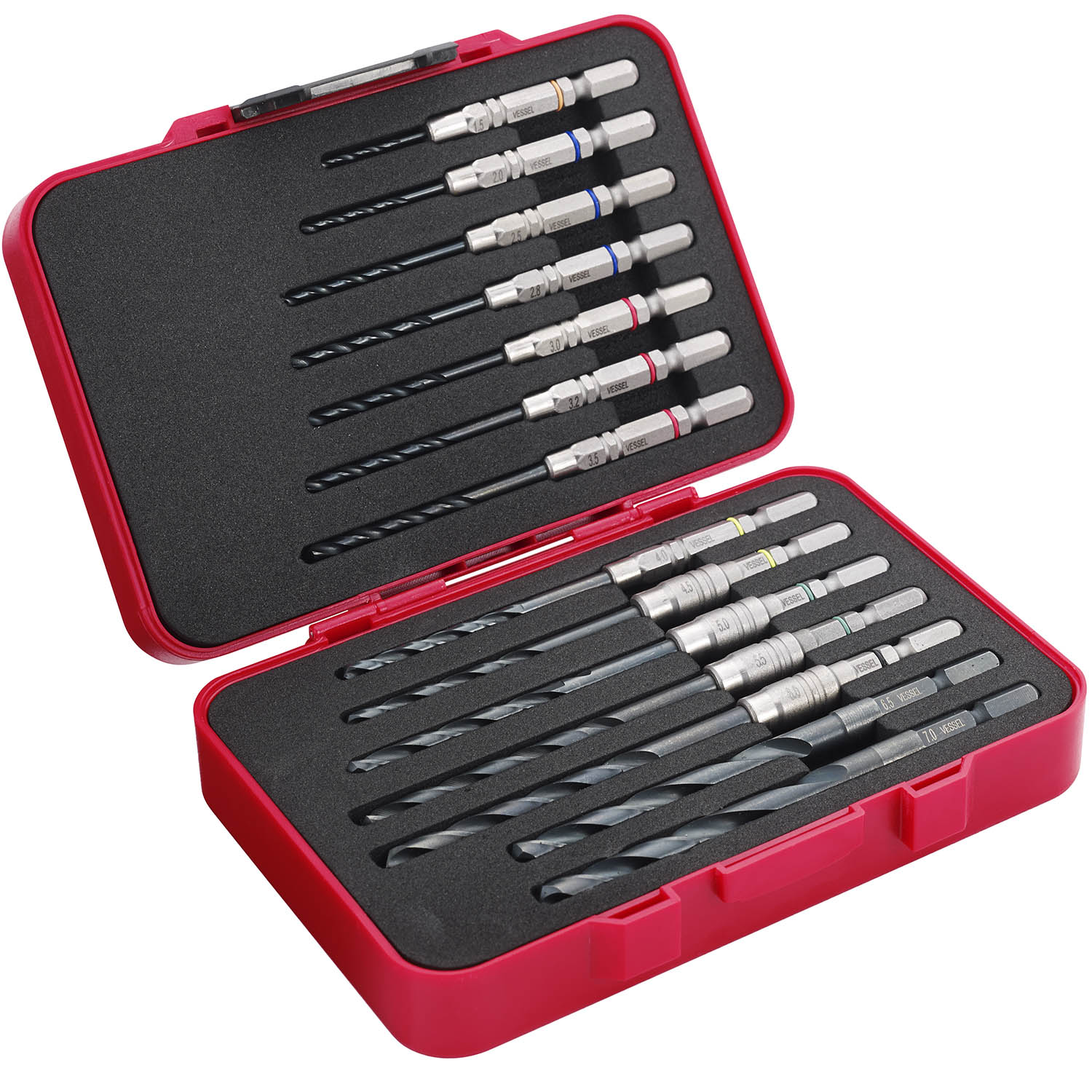 缓冲钻头套装(铁工用)14支装 No.AMD14S(Φ1.5,2.0,2.5,2.8,3.0,3.2,3.5,4.0,4.5,5.0,5.5,6.0,6.5,7.0mm 各1支)