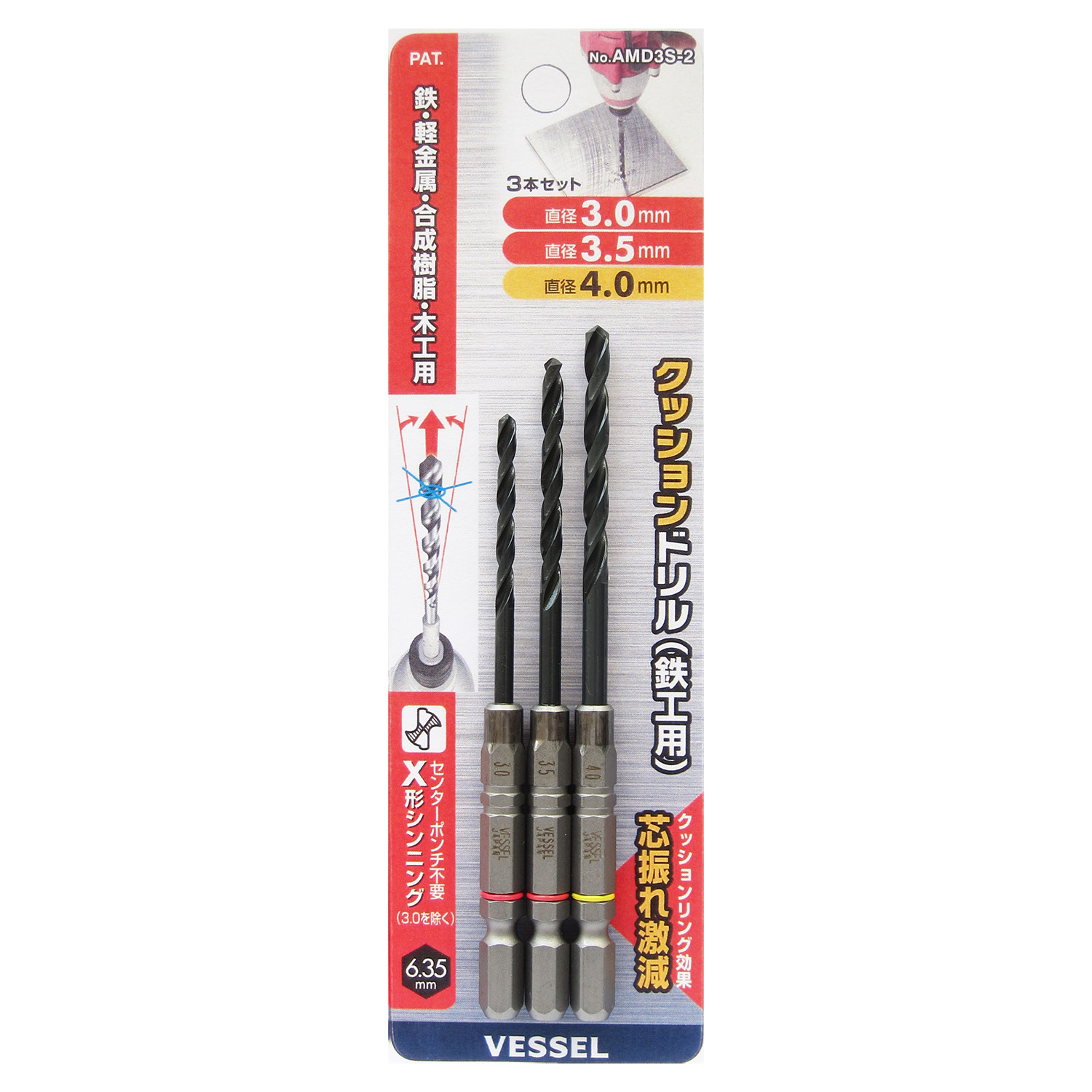 缓冲钻头(铁工用)3支装 No.AMD3S-2(Φ3.0,3.5,4.0mm 各1支)