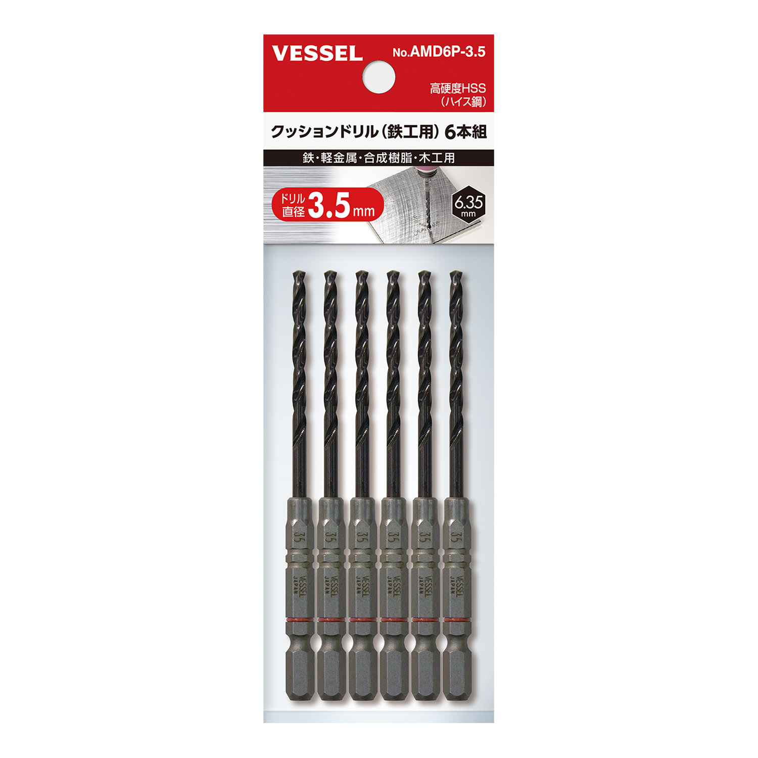 缓冲钻头(铁工用)6支装 No.AMD6P35(φ3.5×103mm 6支)