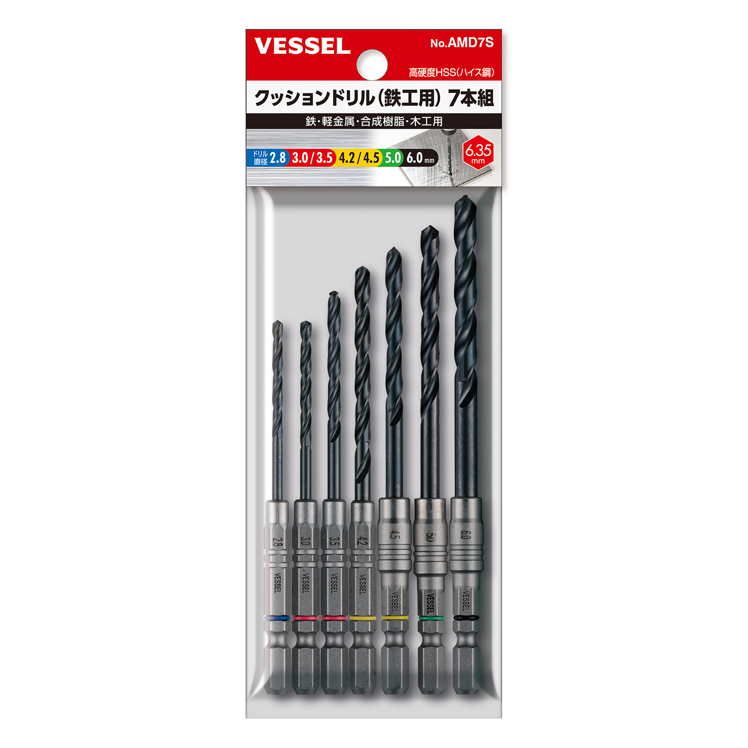 缓冲钻头套装(铁工用)7支装 No.AMD7S(Φ2.8,3.0,3.5,4.2,4.5,5.0,6.0mm 各1支)