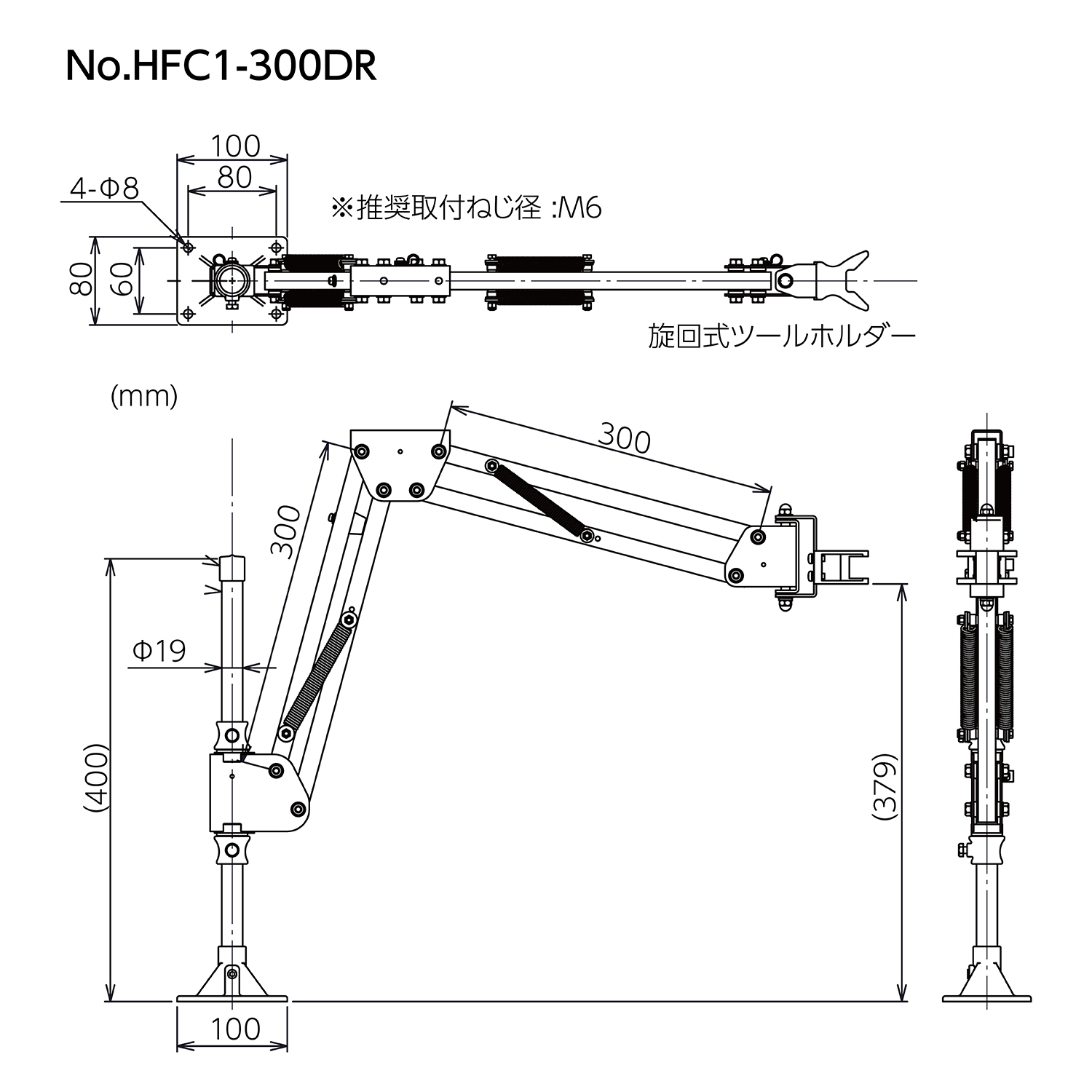 | 标示 | 最大反作用力(N.m) | 适用工具重量(kg) | 适用工具外径(mm) | 活动范围(mm) |
