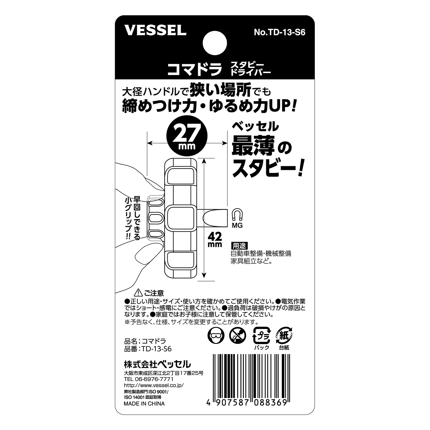 标示 刀尖尺寸 轴长mm 轴对边长mm 柄的直径mm 主体总长mm 内包装数量 外包装数量 日本JAN条形码