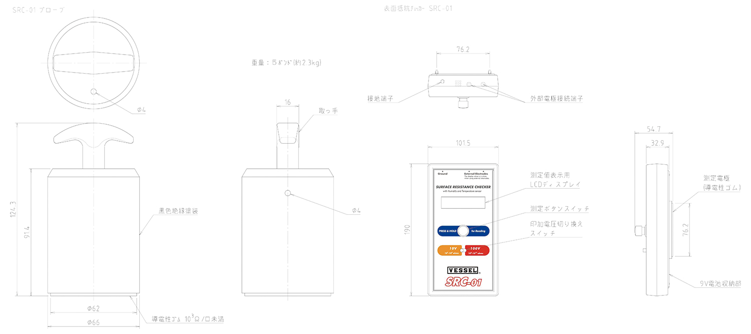 SRC-01 | 190×101.5×54.7 | 340 | 10 V(R <1.0×10 6 ohm或ohm / sq),100 V(R≥1.0×10 6 ohm或ohm / sq) | 4907587020505 |