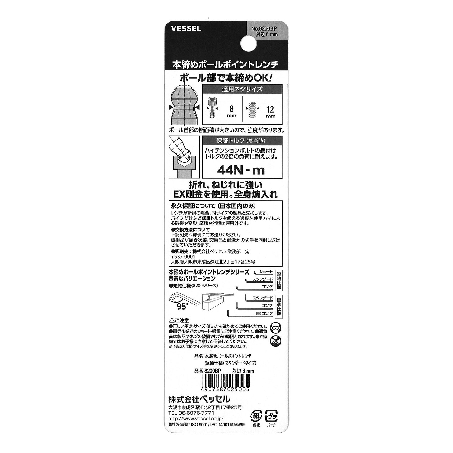 标示 主体总长mm L型扳手的短边尺寸mm 主体重量g 内包装数量 外包装数量 日本JAN条形码
