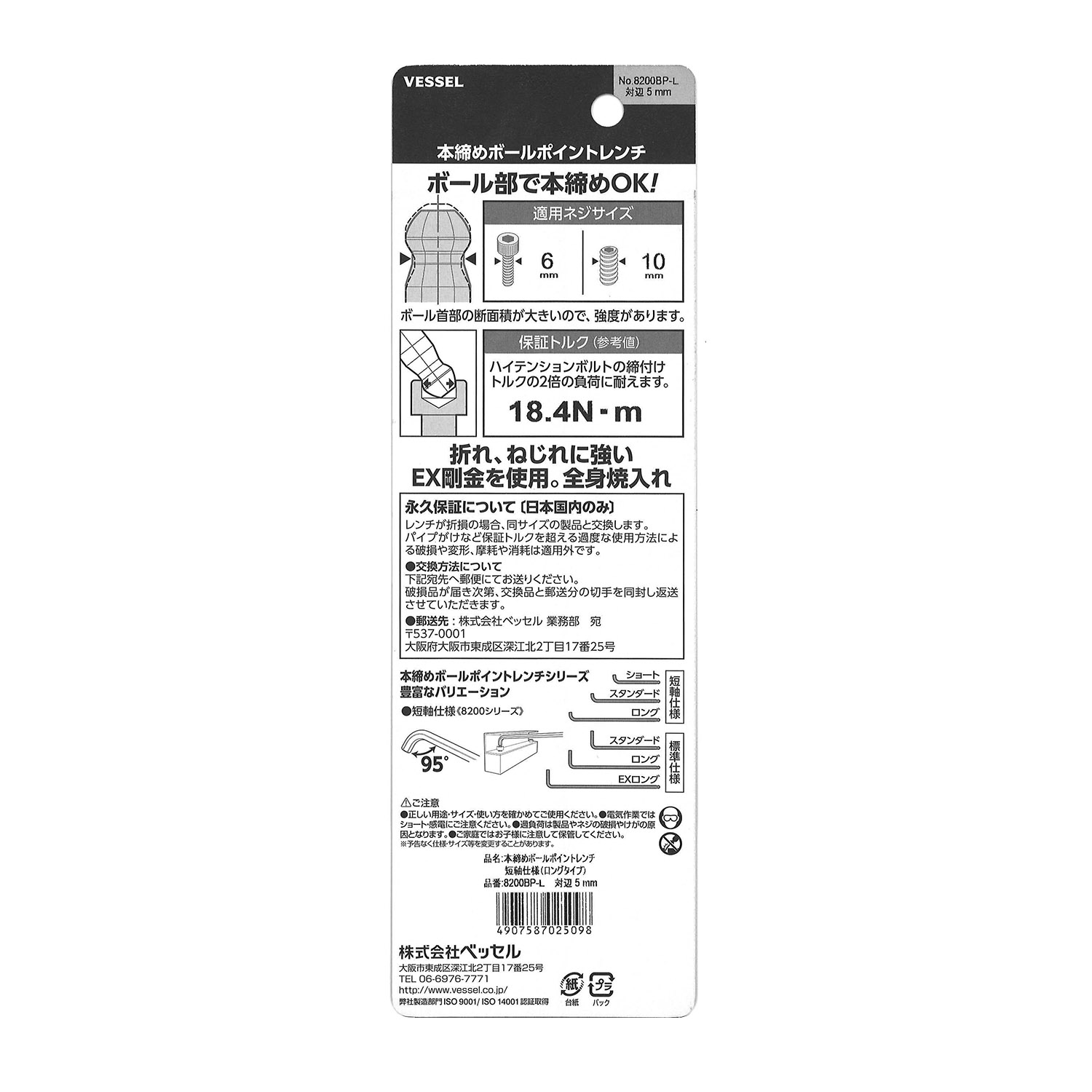 标示 主体总长mm L型扳手的短边尺寸mm 主体重量g 内包装数量 外包装数量 日本JAN条形码