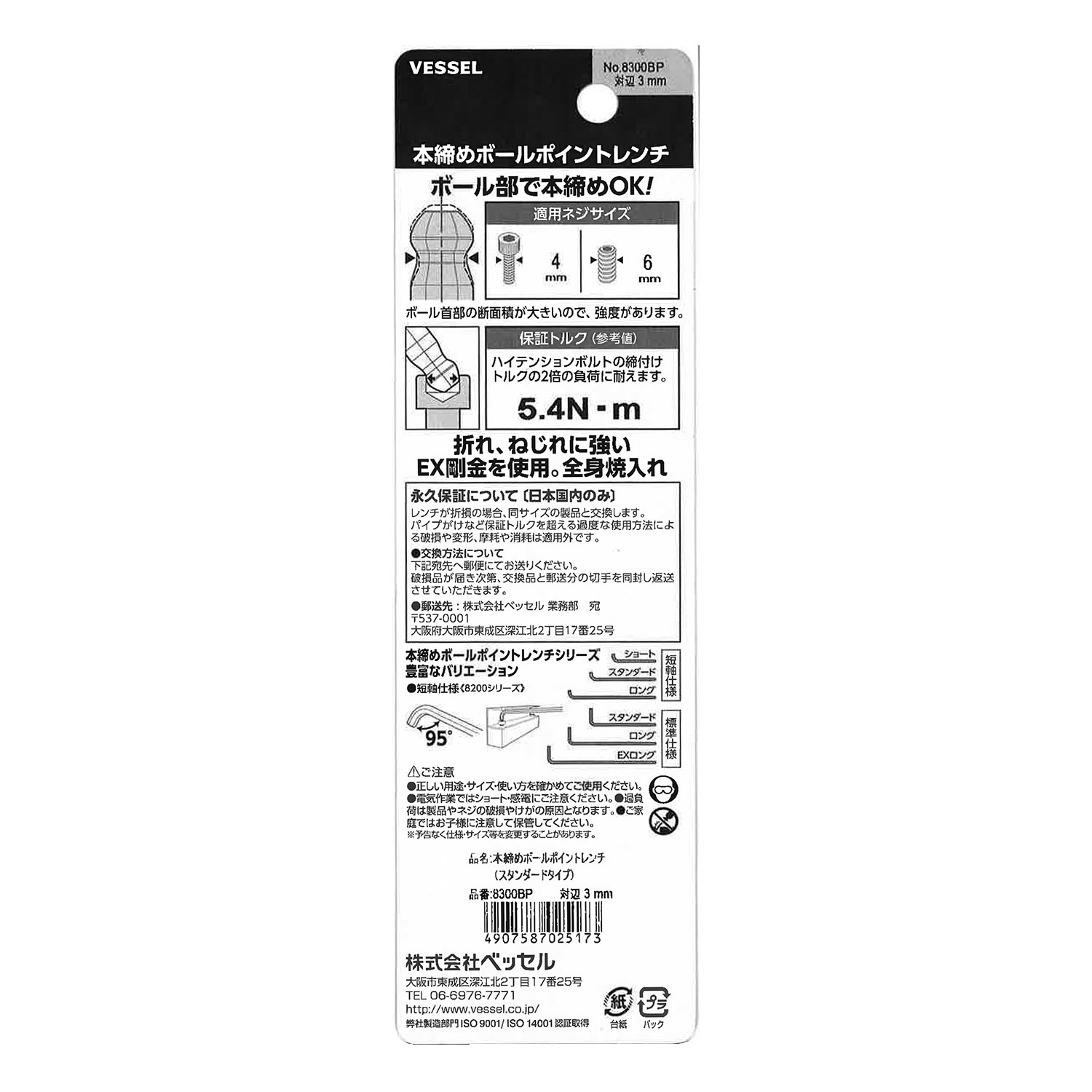 标示 主体总长mm L型扳手的短边尺寸mm 主体重量g 内包装数量 外包装数量 日本JAN条形码