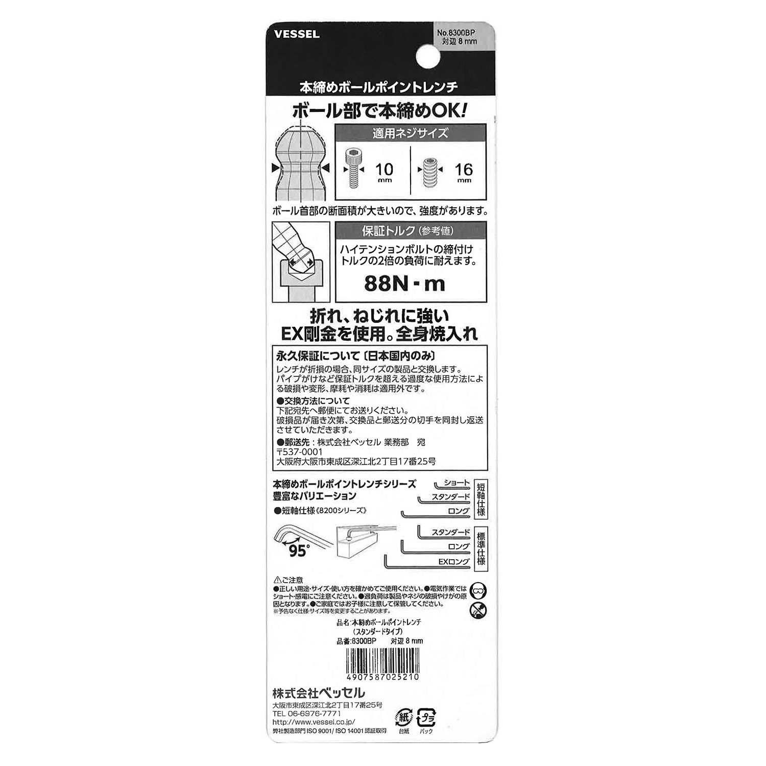标示 主体总长mm L型扳手的短边尺寸mm 主体重量g 内包装数量 外包装数量 日本JAN条形码