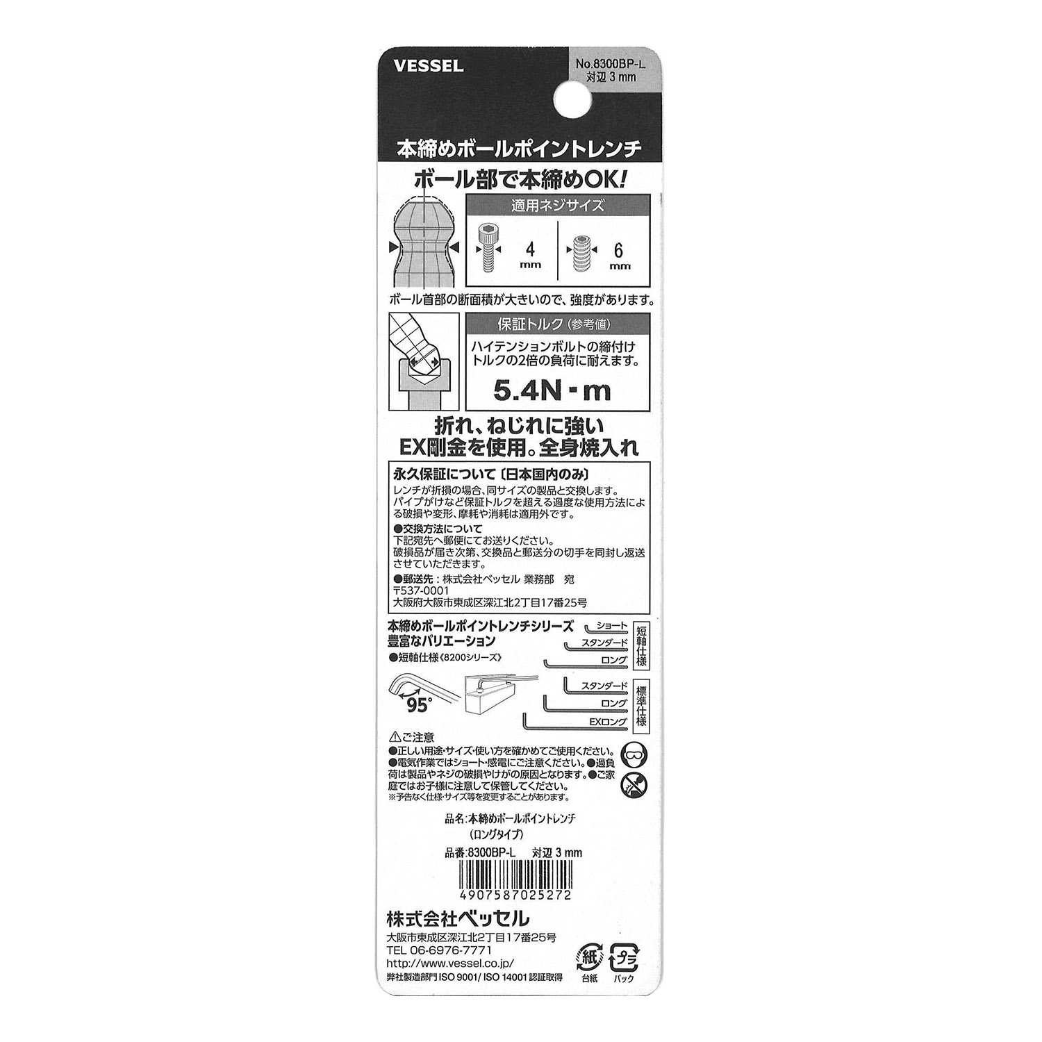 标示 主体总长mm L型扳手的短边尺寸mm 主体重量g 内包装数量 外包装数量 日本JAN条形码