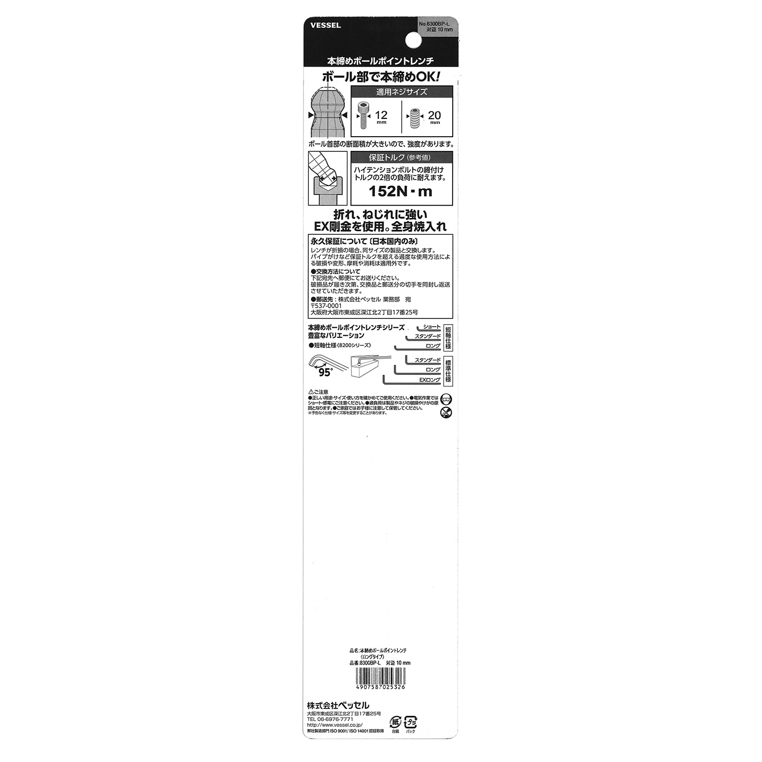 标示 主体总长mm L型扳手的短边尺寸mm 主体重量g 内包装数量 外包装数量 日本JAN条形码