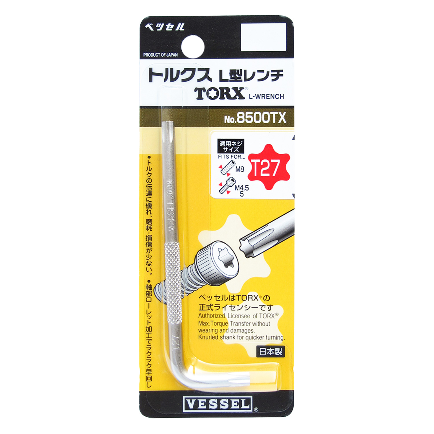 标示 主体总长mm 刀尖外直径mm L型扳手的短边尺寸mm 主体重量g 内包装数量 日本JAN条形码