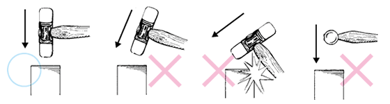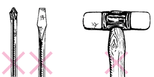 ●作业时,请务必配戴护目镜。 ●请垂直敲打,切勿斜向敲击。 ●除锤击面以外,请勿敲打其它部分。