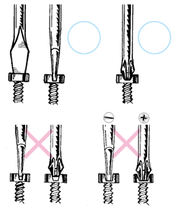 ●切勿用于带电的机器设备上。![]() ●请选用与螺丝尺寸相符的螺丝刀。 ![]() ●请勿将螺丝刀用作凿子、起钉器、撬棒。 ●请勿过分用力使用。 测电螺丝刀●使用前,请务必确认是否亮灯。●请注意避免触电、短路。 ●请在各自产品的测电范围内使用。 ●请勿在沾水、沾油等状态下使用。 |